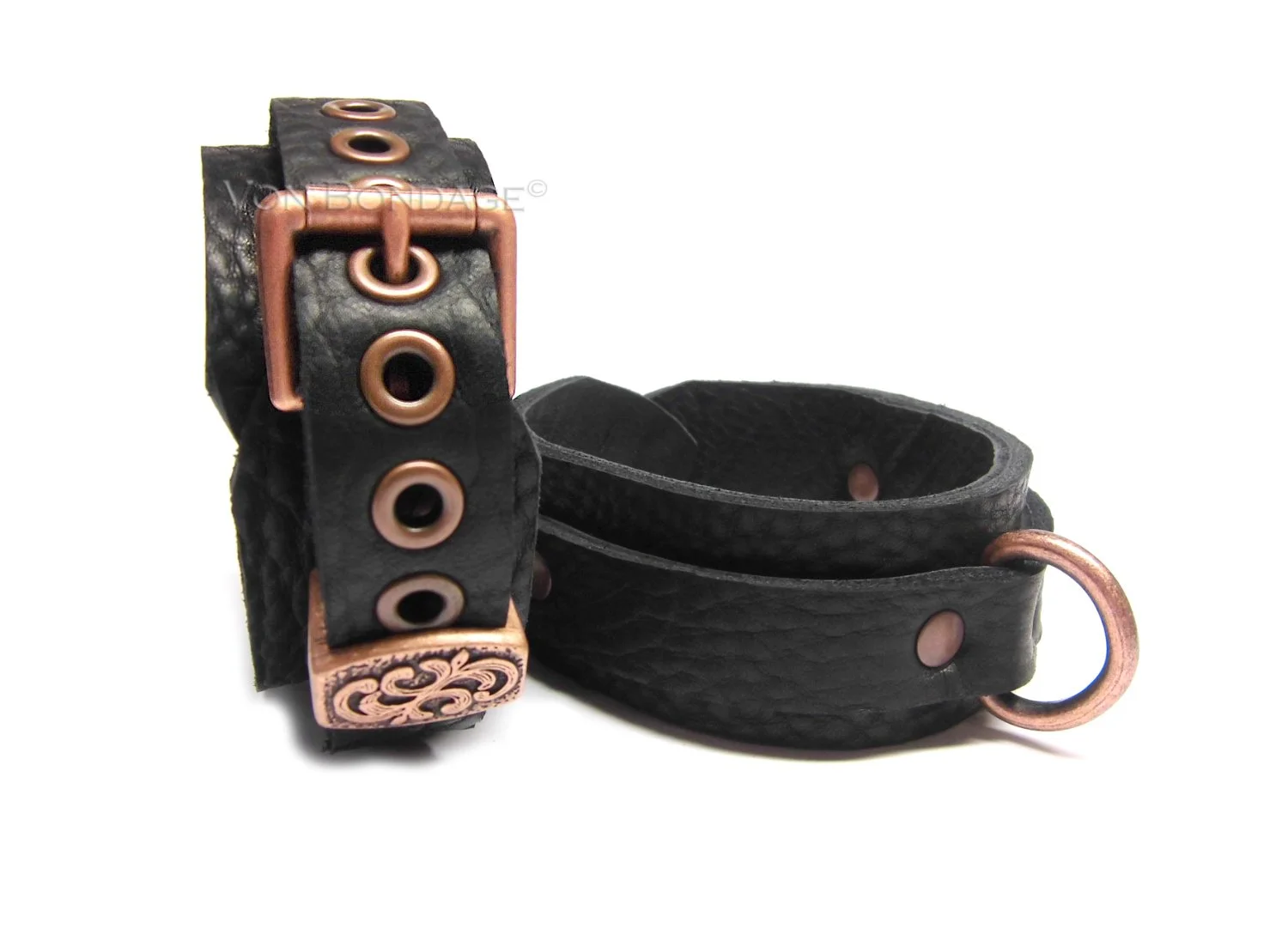 Leather Restraints w/Copper D-rings in Bullhide w/Bison