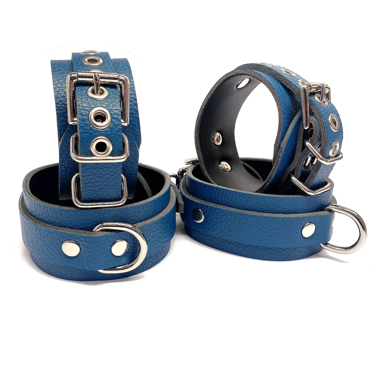 Colored Leather choices are available in all listings in the “Bondage Collars Full Leather Options” section as well as their own section. In the Restraints section you can choose a color in any listing’s “Leather Choice” option box in both the Nickel and Nickel Free sections for Restraints. The Colors have their own section in Colored Leather Restraints in Nickel or you can go to the Colorful Leathers Bondage Collections to view everything in one place!