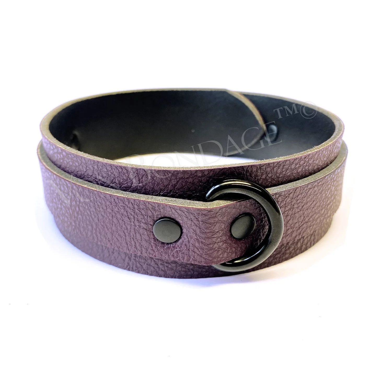 Leather slave Collar in Black Bullhide w/Purple Lambskin