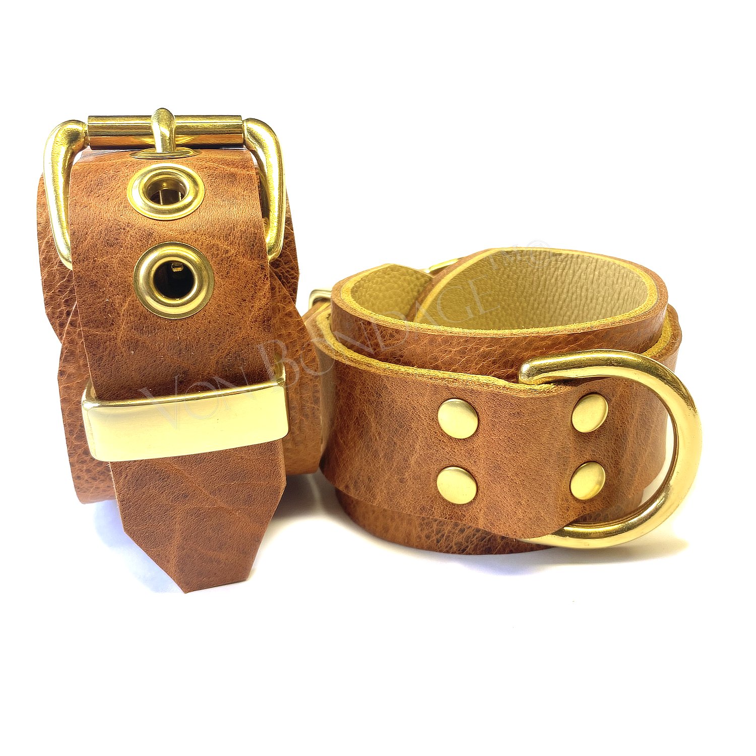 Pair of Restraints w/Brass D-rings in Whiskey Bison w/Buttercream