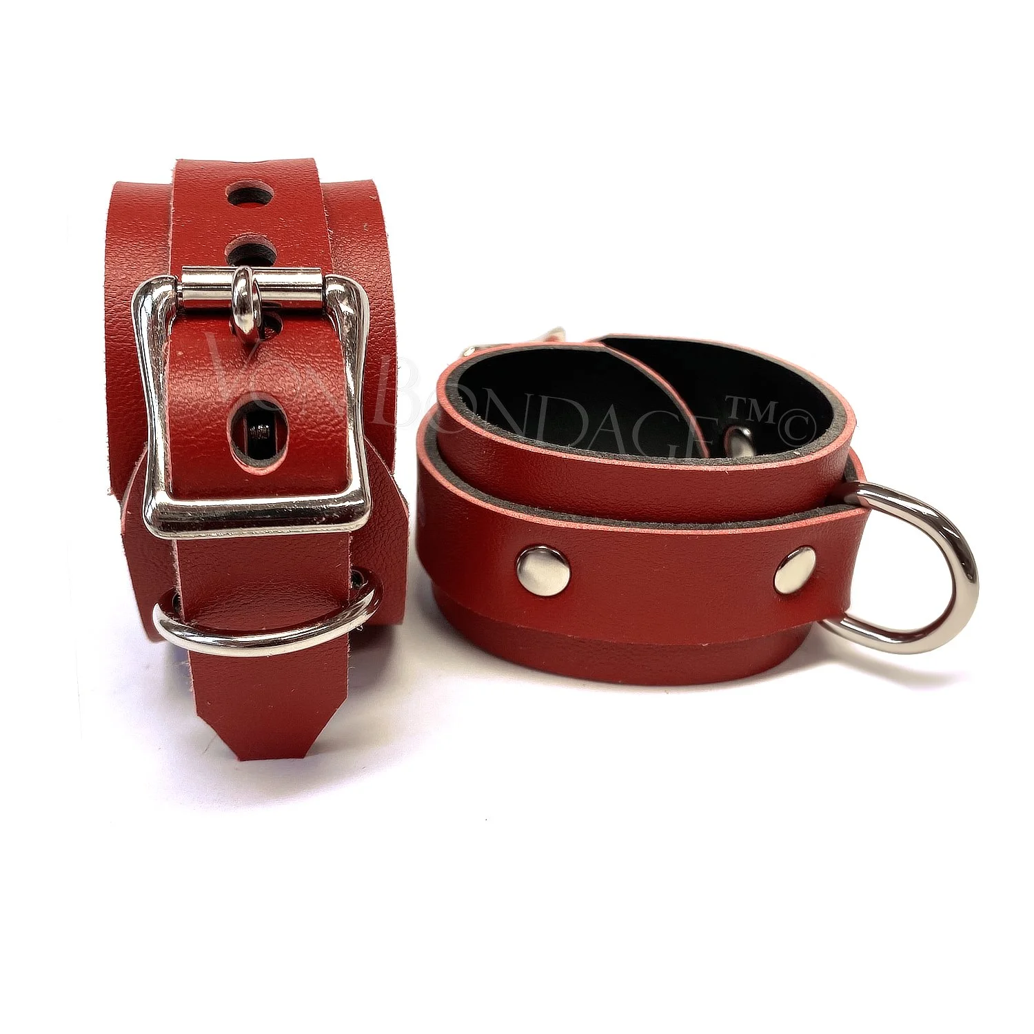 Leather Restraints w/Black Hardware in Bison w/Red Bullhide