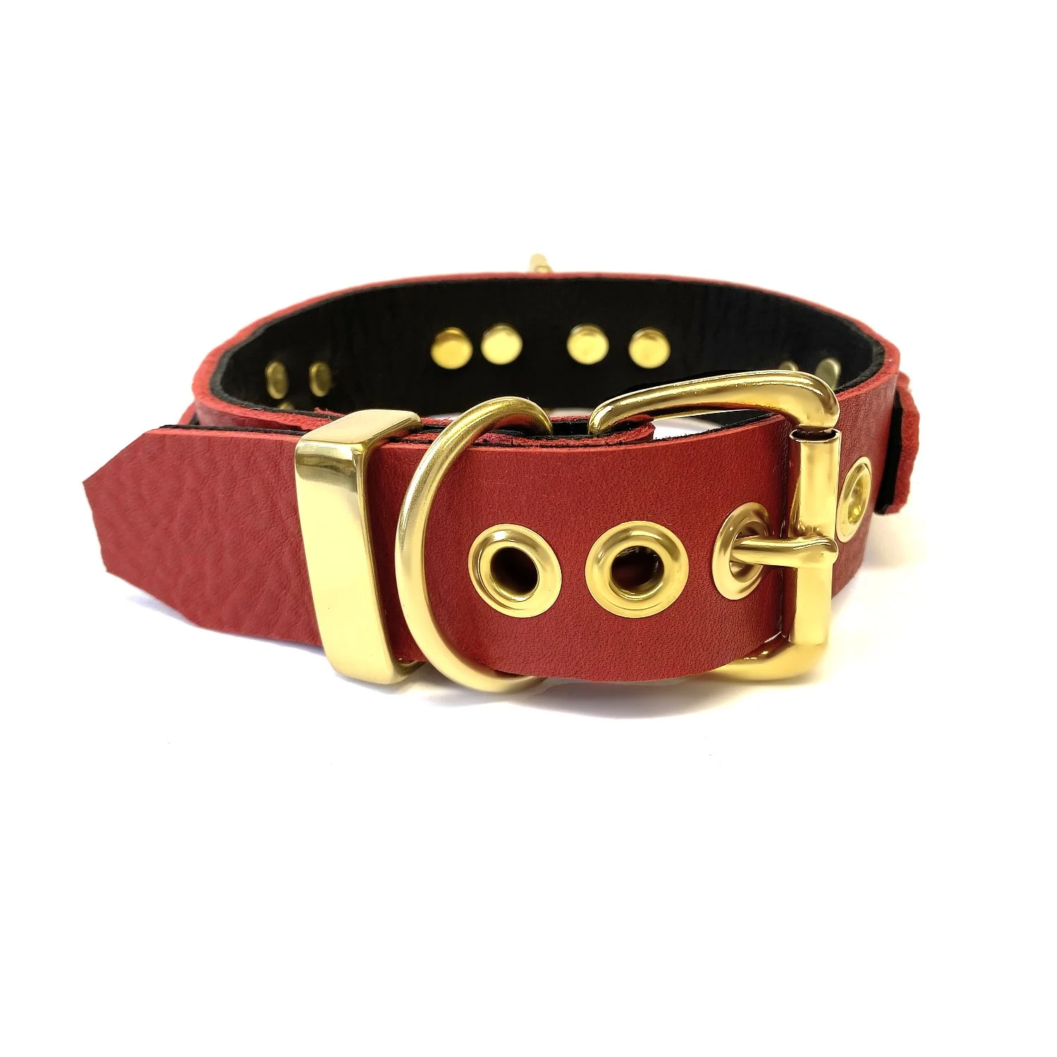 - Leather & Brass Bondage Collar with 1-1/4 Brass D&O Ring