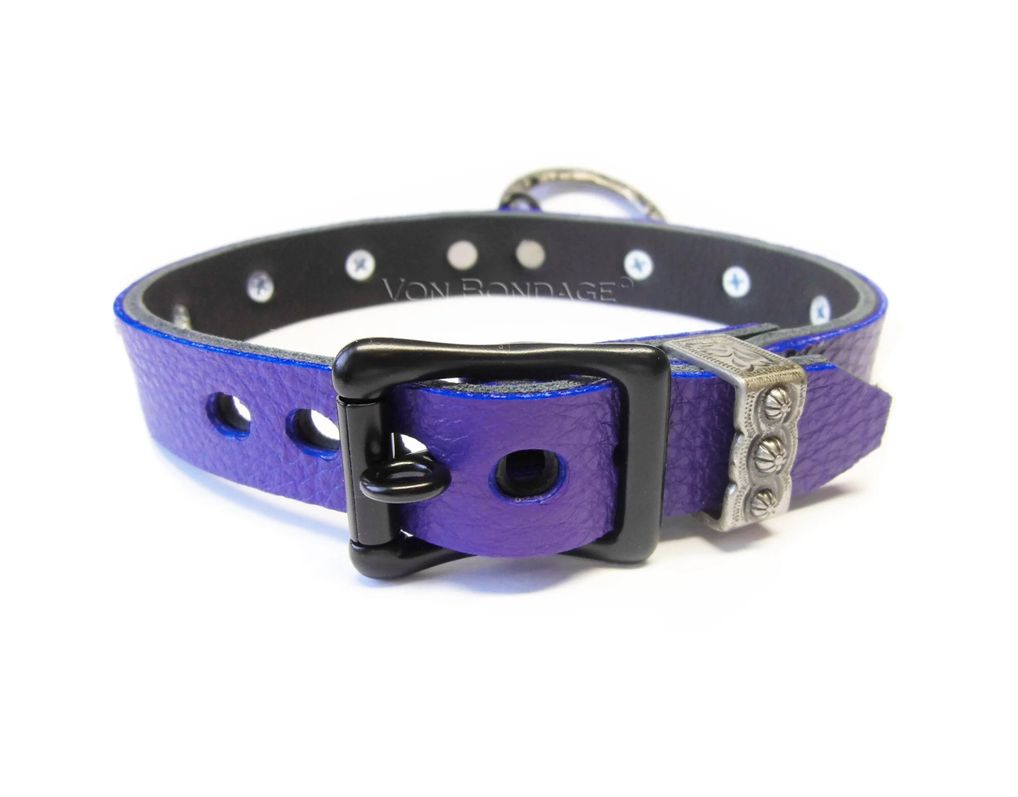 The BDSM collar is made using a choice of different types and colours of leather which you may choose when you add to cart. The collar shown is made in the Chahin Latigo leather which is a very nice 9-11oz thick leather hide which is super smooth and flexible. This hide is oiled with leather conditioner to make it very supple. You may read all about this hide in the Leather Information Page.