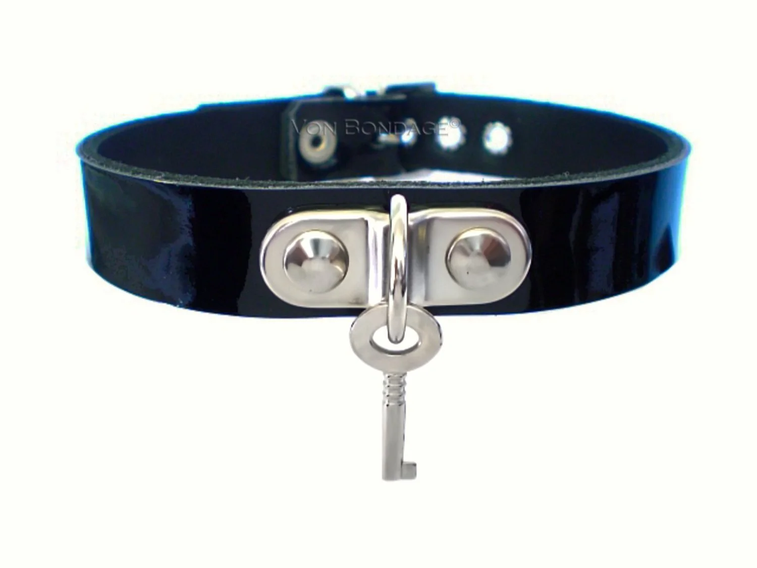 Patent Leather Lockable Collar with Plated Rings